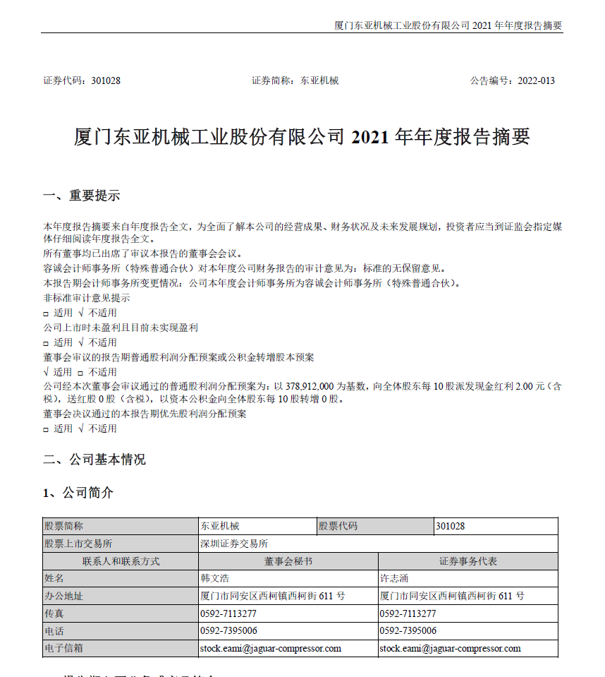 2021年年度报告摘要