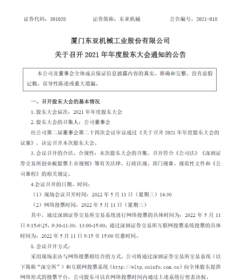 关于召开2021年年度股东大会通知的公告