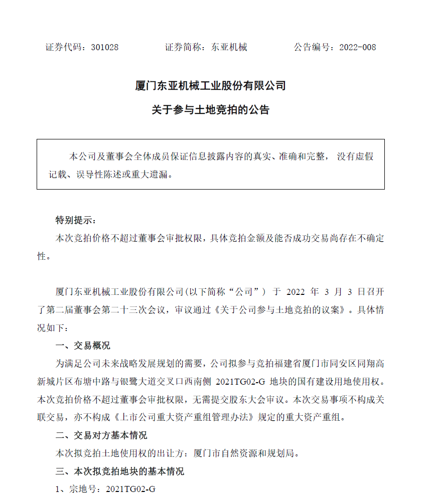 关于参与土地竞拍的公告