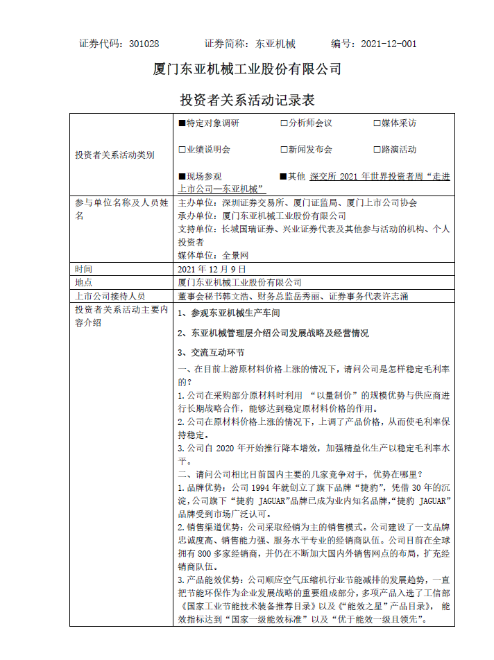 2021年12月9日投资者关系活动记录表